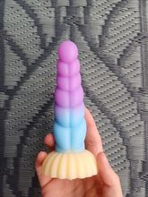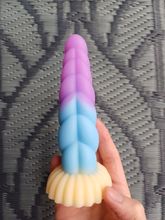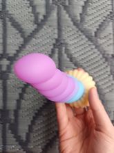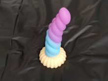 Really pretty toy! It's made from very soft, squishy, milky silicone, the detail is nice, it has a decently strong suction cup on the bottom, and feels really pleasant, both to touch and in use. I love the colors and the curvature, and the ribbed, sort of half-swirled design makes for a really pleasurable experience in use. I took the smallest one, and i honestly thought it's gonna be a little smaller, but it's just perfect for me! Though i generally tend to like smaller toys due to my atypical anatomy, so if you feel like 13cm of length is not quite enough, then you should probably aim for medium or large size for this toy.